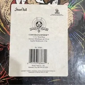 1998 Looney Tunes TAZ the Tasmanian Devil 3-Ring binder. Awesome colors and graphics front and back. Interior has Bugs Bunny head logo pattern. 3 ring mechanism functions as it should. 2" binder.