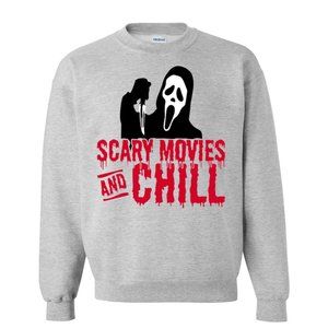 Scary Movies and Chill Sweater, Light Grey Scary Movie Scream Sweater, Halloween