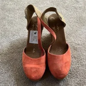 3.5” heel, soft pink suede, rubber sole, in excellent condition (never worn)