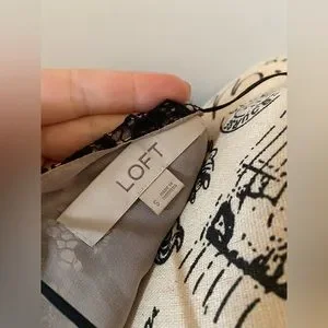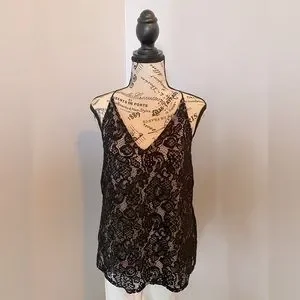LOFT black tank w/ overlay, size Small. Black overlay with nude lining. Shell 68% Nylon, 32% Cotton Lining 100% Polyester