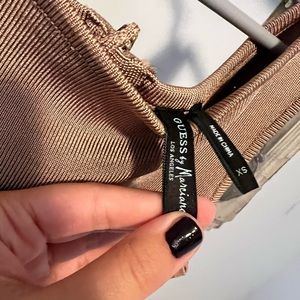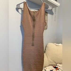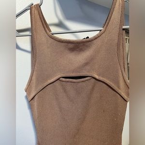 Tan dress with middle opening by the chest