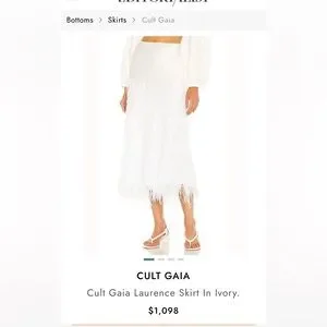 Cult Gaia feather skirt and top!! Bought this from a consignment site and never wore it myself. In great condition, can’t personally find any signs of wear. Both top and skirt are a size S. Sells for $1098 and $218 separately.