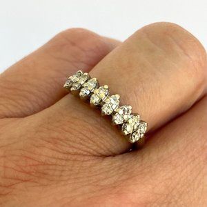 Vintage 14K White Gold 16 Stone Round Diamond Infinity Style Wedding Band Ring