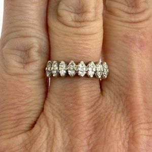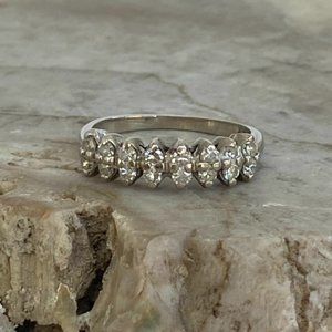 VTG 14K EREV White Gold 16 Stone Round Diamond Wedding Band Ring 5.75