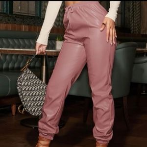 Pink Faux Leather Jogger Pants