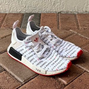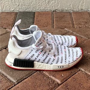 The adidas NMD_R1 ‘TKO' was part of the ‘Passport Pack’ collection. Designed by Nic Galway, the sneaker features a premium mesh upper with an allover print in multiple languages translating to ‘The Brand with the Three-Stripes.' The full-length Boost midsole features black and white plugs paying tribute to Tokyo while providing support and cushioning. Below, a red rubber outsole offers a pop of color and enhanced traction.