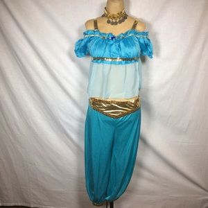Halloween Jasmine Costume, #587. Size Small (2-4). Pre-owned, Worn Once. Measurements laying flat may vary slightly. Let me know if you have any questions.