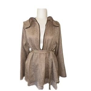 SHEIN - XL(12) | Geo Pattern Foldover Collar Layer Hem Belted Coat - NEW