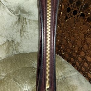 in Plum red taiga leather Still in very good condtion.interior and exterior is still in great shape,no rips,no rubs ,no cracks and no peeling.Gold tone hardware is still in prestine condition,zipper still runs smoothly..missing the leather wristlet..Date code VI0041
