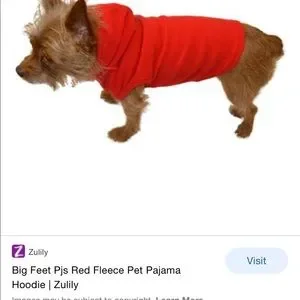 Big Feet PJs hooded fleece pet pajamas are great for any cat or dog. Pet hoodie sweater is fashioned out of a durable soft and warm micro polar red fleece. Sweater has roomy arm holes instead of sleeves which your pet will enjoy.