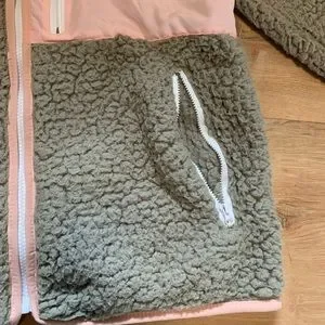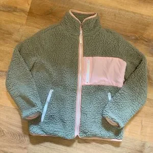 Full zip jacket! 3 zippered pockets, fully lined, in excellent condition! Hardly worn. Pretty sage green with pale pink accents.