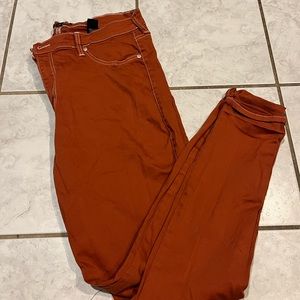 High waisted Skinny leg burnt orange/rust red stretchy size 14 jeans from Fashion Nova. Very stretchy and comfortable! Only used once but they are too big for me.