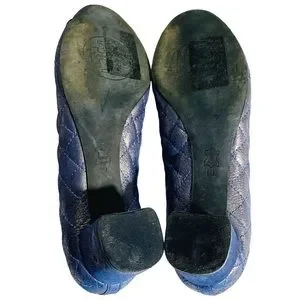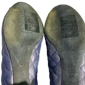 Tory Burch Kaitlin Quilted Cap Toe Navy Blue Metallic Pump Block Heel Size 9 M
