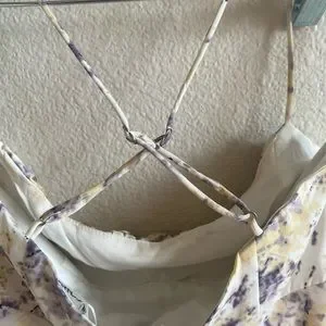 Beautiful floral midi dress with hints of yellow and purple. Only worn once, in like new condition. This is just a little longer for my liking at 5’1.