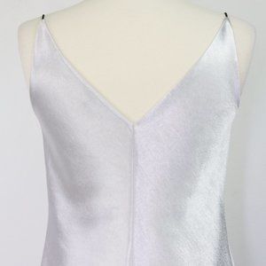 Vince Metallic Satin V-Neck Cami Sleeveless Skinny Strap Camisole Tank Silver XS