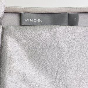 Vince Metallic Satin V-Neck Cami Sleeveless Skinny Strap Camisole Tank in Silver. Size X Small.