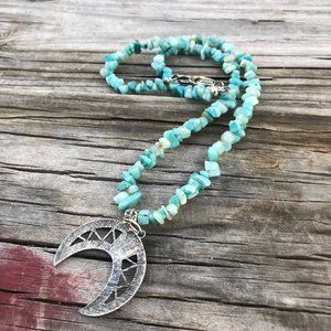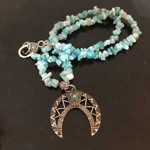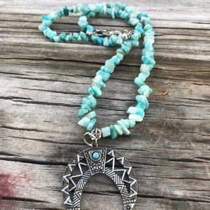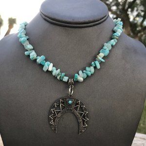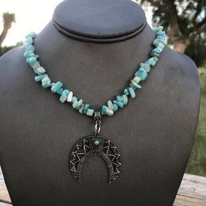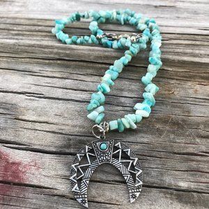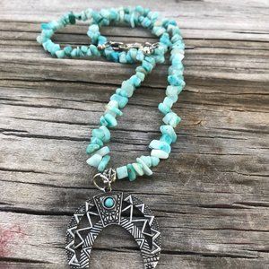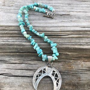 Southwestern Amazonite Gemstone Necklace Handmade Squash Blossom Silver Beaded