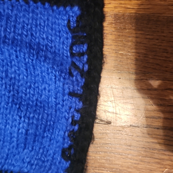 Handknitted and finished in April of 2016 (date stitched into peice, see picture). Made with soft to touch yarn. Tendency to stretch. Overall, made with love ❤️