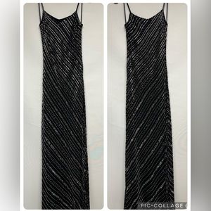 Adrianna Papell beaded sleeveless long black formal gown