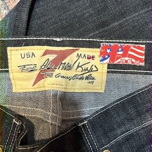 Black denim with green and bronze stones