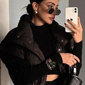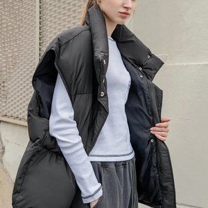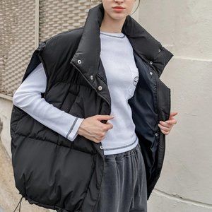 Zip up Drawstring Hem Puffer vest Coat Comfy winter