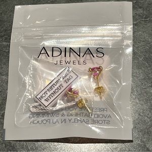 Adina Earrings (Adina Eden Jewels Brand) Solitaire Round Stud Pink CZ Stones Post Back NWT