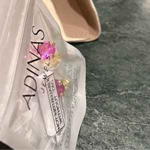 Adina Eden Jewels Earrings Solitaire Round Stud Pink CZ Stones Post Back NWT