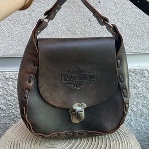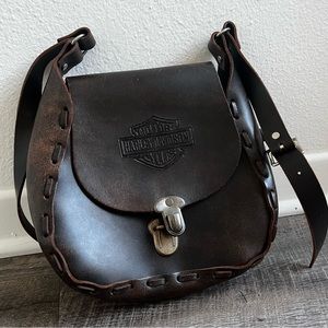 ꧁ Vintage Brown Harley Davidson Handstitched Leather Crossbody Bag ꧂