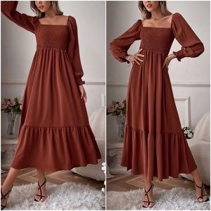 Boho Puff Sleeve Minimalist Ruffle Maxi Dress