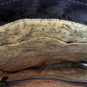 This Loungefly x Star Wars large tote bag can either be worn as a crossbody bag (with a removable strap) or carried with two top-handles; Vintage-looking Star Wars trading cards adorn the bag. Very unique and cool. Perfect for traveling or running errands around town.
