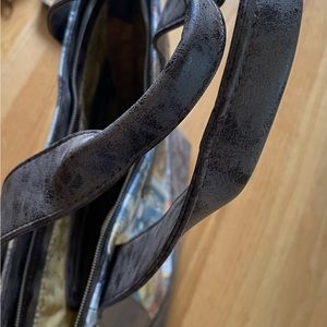 Faux leather accents and crafted in quality canvas that includes adjustable shoulder strap. Excellent condition, no tags but new, just stored in my closet.