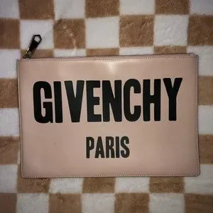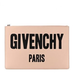 This is an authentic GIVENCHY Calfskin Logo Zip Pouch in Pale Pink. It has a few small imperfections (shown in pictures) but other than that it’s in very good condition.
