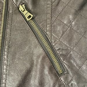 Womens Guess Jacket size Medium Brown Faux Leather Zip Up Jacket