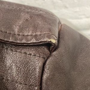 This is a Womens Guess Jacket size Medium Brown Faux Leather Zip Up Jacket!!.It is pre-owned with no noticed stains and with minimal wear as shown in the photos!!..This jacket is in good pre-owned condition..below are Measurements to compare & if you have any questions please don't hesitate to contact me at anytime & thanks so much for looking!!