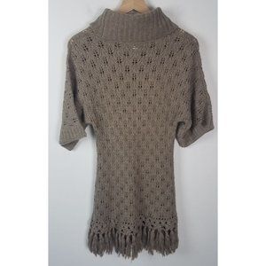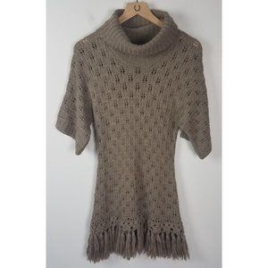 Kenar Women's Sz. M Tan Wool Blend Cowl Neck Short Sleeve Fringe Detail Sweater