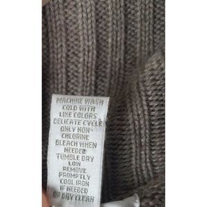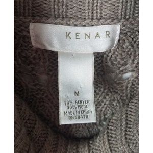 Kenar Women's Sz. M Tan Wool Blend Cowl Neck Short Sleeve Fringe Detail Sweater is in gently used condition. Some minor pilling.