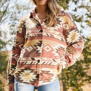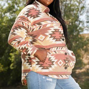 Zenana Firelit Night Full Size Brushed Geometric Print Shacket