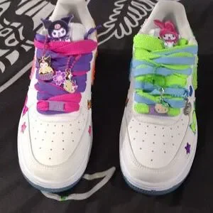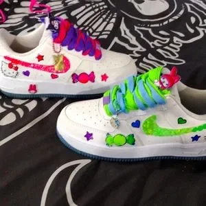 I'm selling a pair of Nike color changing air force ones custom, no longer sold in the u. s. when the sun hits them they are bright colors I hand painted them and bejeweled them my self and added custom charms, message me for more photos