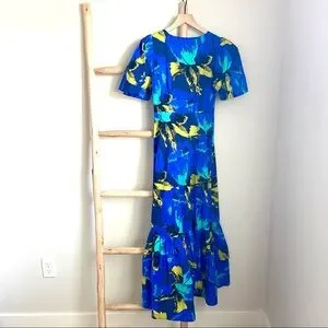 Christopher John Rogers Floral Puff Sleeve Tiered Dress