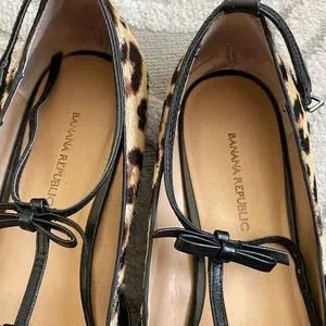 Banana Republic pointy toed leopard calf hair black leather flat sz. 8.5. Worn good condition.