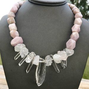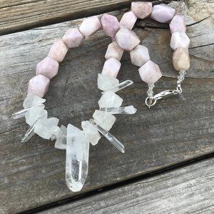 Goddess Necklace Genuine Quartz Crystal Pink Kunzite Solid Sterling Silver 925