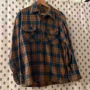 VTG Pendleton Orange and Blue Wool Men’s Flannel Size L