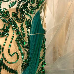 Emerald Sleek Sexy Prom Dress, Size 4 Plunge, Pageant Formal Mermaid Put a Slit