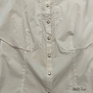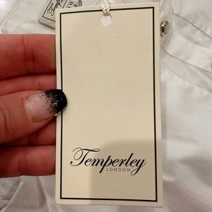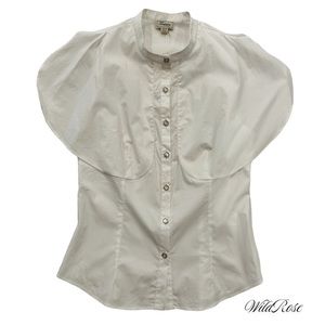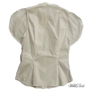 TEMPERLEY LONDON WHITE COTTON BUTTON UP BLOUSE FLARED SHOULDERS SZ 8 FITS US 4