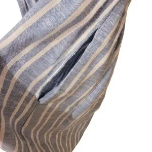 Color is light blue with white vertical stripes. There is pattern in between the stripes.