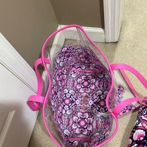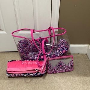 Vera Bradley beach bag with towel and small zip bag in Magenta Medallion pattern