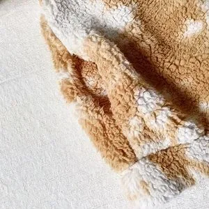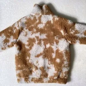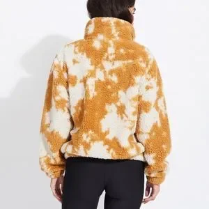 Betsy Johnson Performance Teddy Bear Jacket Woman’s Size Small. Tan and Cream cow print or tie dye. Two pockets and one zip pocket on chest. In great pre loved condition. Comes from a smoke free and pet free home.
