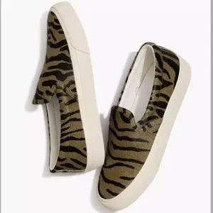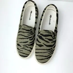 Madewell Sidewalk Slip On Sneakers in Zebra Calf Hair green black