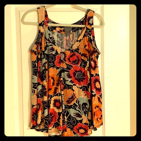 Vintage colours and a flowing shape make this a great layering piece. Black, orange, mango, mint, purple. Due to the generous cut, the top would easily fit S-M-L. It is a small, but I listed it as a medium because that is what I wear and it is still roomy.