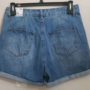 Great looking woman's Mom Shorts. Front pleats, folded bottoms, sude front pockets, patch back pockets.